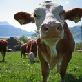 Wir legen viel Wert auf eine artgerechte Tierhaltung und glückliche Tiere. Unser zertifizierter BioBauernhof wird als "Mutter-Kuh" Betrieb geführt, das bedeutet, dass die Kälber nach der Geburt nicht von der Mutter getrennt werden, sondern bei ihr bleiben dürfen. Im neuen "Freilaufstall" können sich unsere ca. 30 Rinder und Kälber frei bewegen und jederzeit auf die Weide hinter dem Haus laufen. Dort kann man dann auch gut beobachten, wie sich eine Herde in der Natur verhält. Eine ausgewachsene Kuh frißt bis zu 20kg Gras pro Tag, darum wird zusätzlich zum Weiden auch noch im Stall gefüttert. Da gibt es dann viel zu tun - daher sind bei uns große und kleine Helfer für die Stallarbeit immer willkommen! :-)